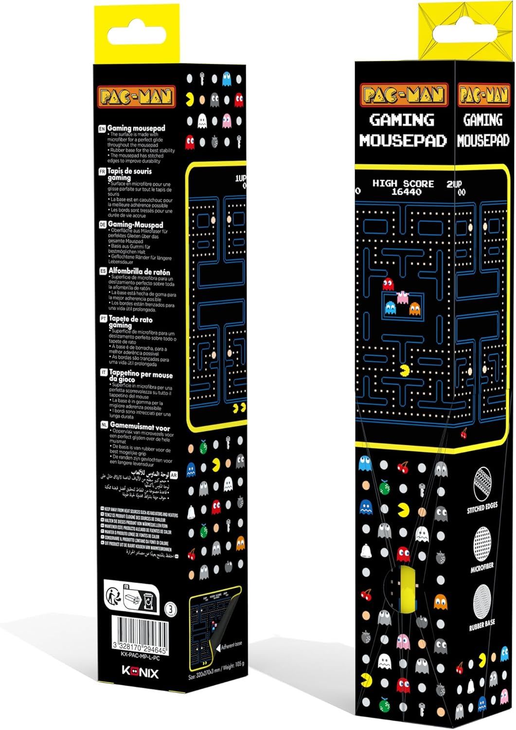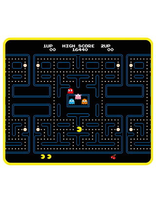 Mejora tu equipo con esta alfombrillaPAC-MAN , una elegante alfombrilla que luce el emblemático diseño del laberinto de Pac-Man en colores vivos.