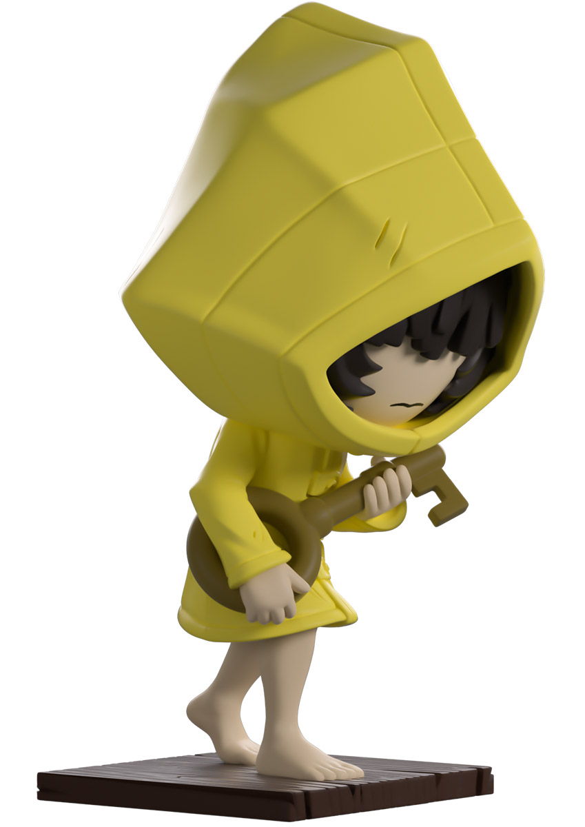 Six s'est faufilée silencieusement dans Youtooz pour ses débuts en vinyle ! D'une taille de 12 cm (et plus proche de la taille qu'elle ressent lorsqu'elle se faufile dans la pale city), elle porte son emblématique imperméable jaune qui est tiré sur la tête, une frange sombre et un petit froncement de sourcils apparaissant sur le devant ouvert. Marchant pieds nus pour masquer le bruit de ses pas sur la plate-forme en bois sous ses pieds, elle serre une grosse clé en bronze sur sa poitrine, prête à ouvrir n'importe quelle porte sur son chemin.