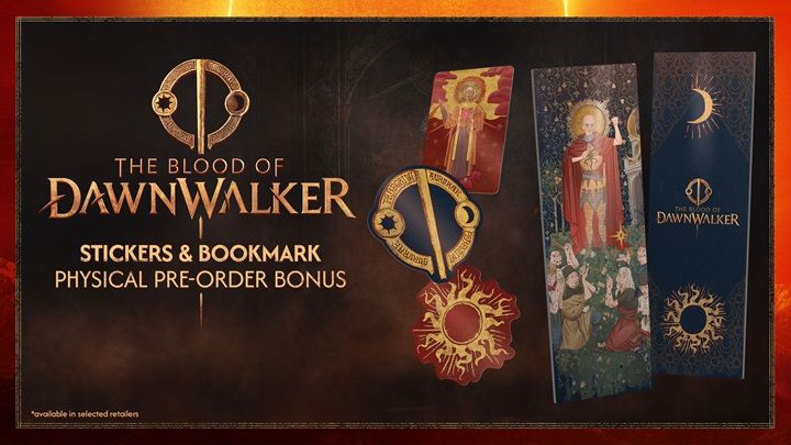 Ricevi un set aggiuntivo di tre adesivi dorati laminati ispirati a elementi caratteristici della storia di The Blood of Dawnwalker.